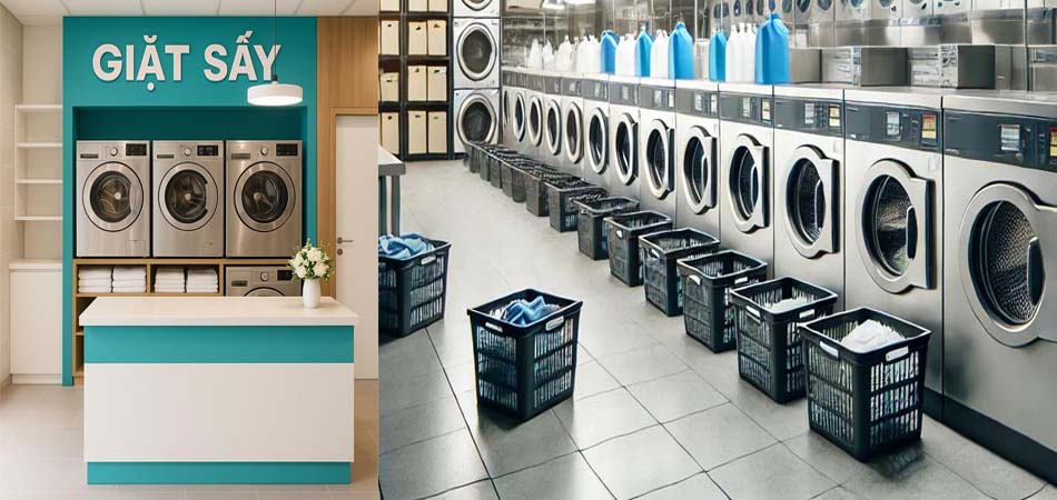 - Chọn máy giặt và máy sấy công nghiệp hoặc bán công nghiệp, tùy theo quy mô.